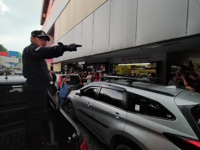 Sambil berdiri di atas mobil bak terbuka, Bima dengan tegas memberikan instruksi kepada para pedagang yang beroperasi dalam sektor tidak dikecualikan untuk segera menutup lapaknya saat itu juga.