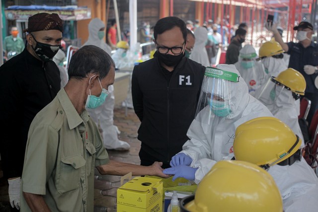 Wali Kota Bogor Bima Arya pun menyempatkan melihat jalannya rapid test bagi pedagang. Ia juga melakukan pemantauan di lapangan terkait toko-toko yang nekat berjualan padahal bukan sektor yang dikecualikan selama PSBB berlangsung.