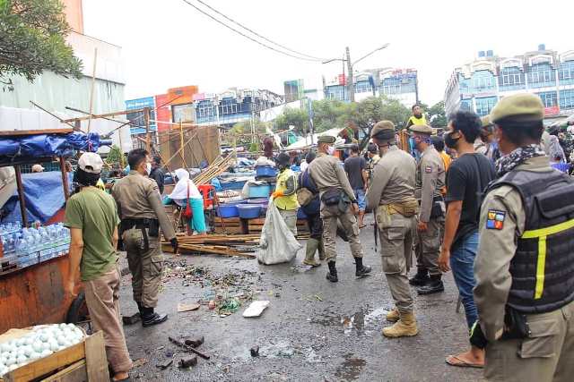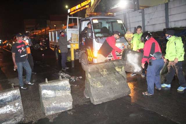 Selain membongkar lapak PKL pemerintah Kota Bogor juga menutup akses Jl. Dari MA. Salmun menuju Pasar Anyar guna mencegah kerumunan massa dan mengurangi kepadatan pengunjung Pasar. (Fey/WB)